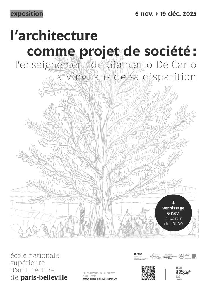 L’exposition « L’architecture comme projet de société. L’enseignement de Giancarlo De Carlo à vingt ans de sa disparition » regroupe des contributions pédagogiques produites pendant l’année universitaire 2024-2025 à l’Ensa de Paris de Belleville, en collaboration avec l’Ensa de Toulouse, le Politecnico di Torino et l’Ensa de Paris-Val de Seine et avec le soutien de l’Institut Italien de Culture à Paris.