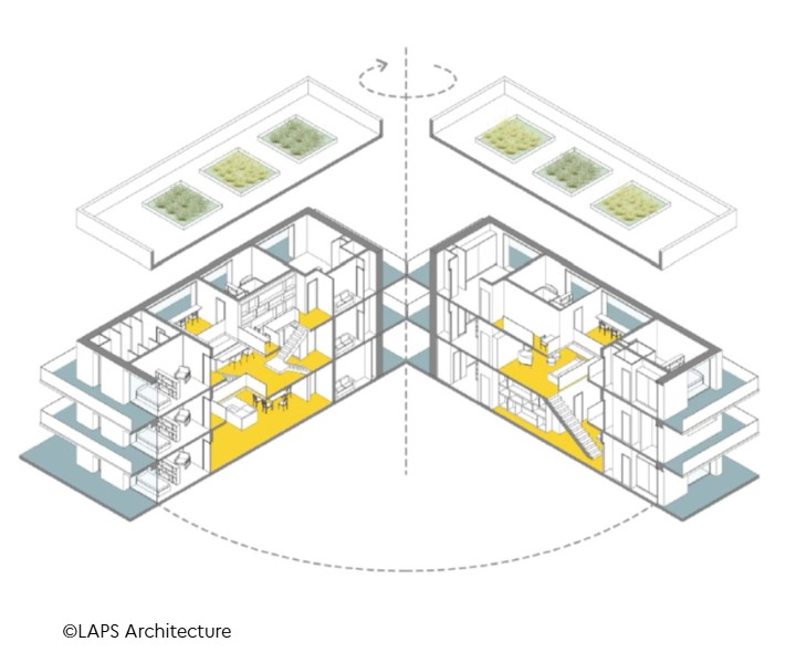 Ce projet s’intéresse à l’adaptation de l’habitat à des parcours de vie contemporains non linéaires. Il travaille sur deux axes d’innovation : la typologie et le matériau. Partant d’un concept de la « co-dividualité », il explorera la construction de logements augmentés d’espaces communs partagés entre les résidents et la ville. Il utilisera la construction en terre dans le but de produire des références et des certifications techniques qui pourront servir de modèle.